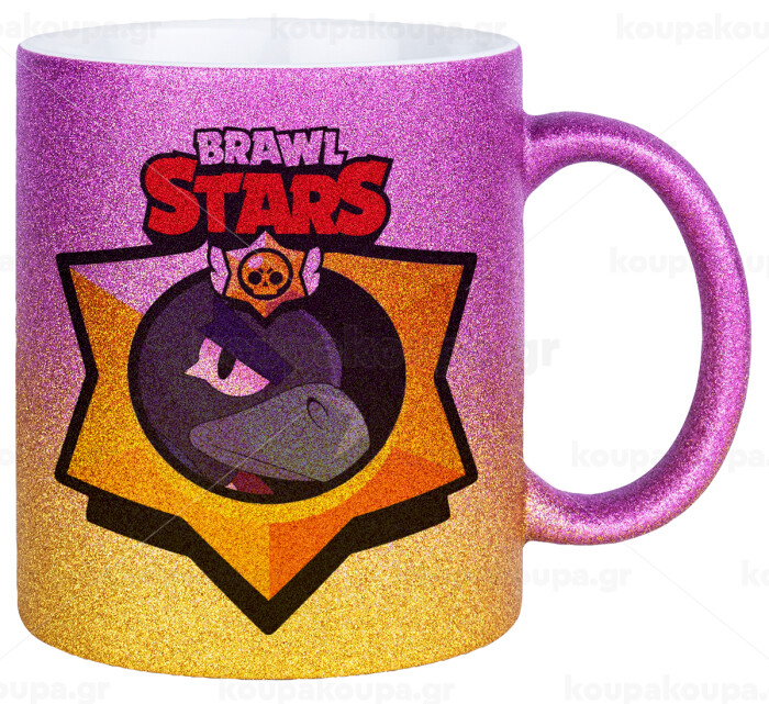 Brawl Stars Crow, Κούπα Χρυσή/Ροζ Glitter, κεραμική, 330ml