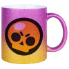 Brawl Stars Skull, Κούπα Χρυσή/Ροζ Glitter, κεραμική, 330ml