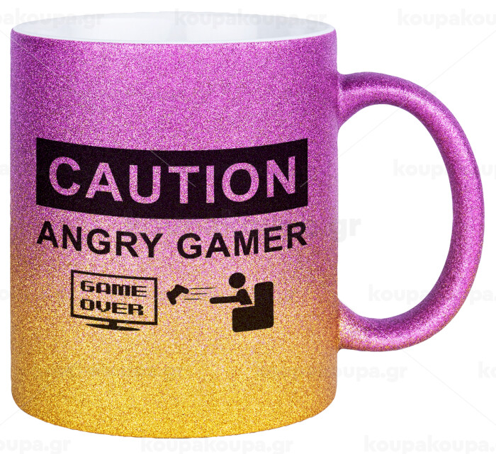 Caution, angry gamer!, Κούπα Χρυσή/Ροζ Glitter, κεραμική, 330ml