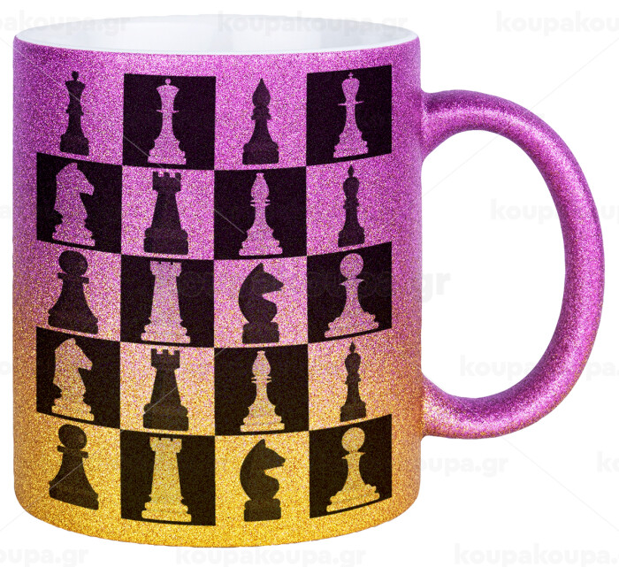 Chess set, Κούπα Χρυσή/Ροζ Glitter, κεραμική, 330ml