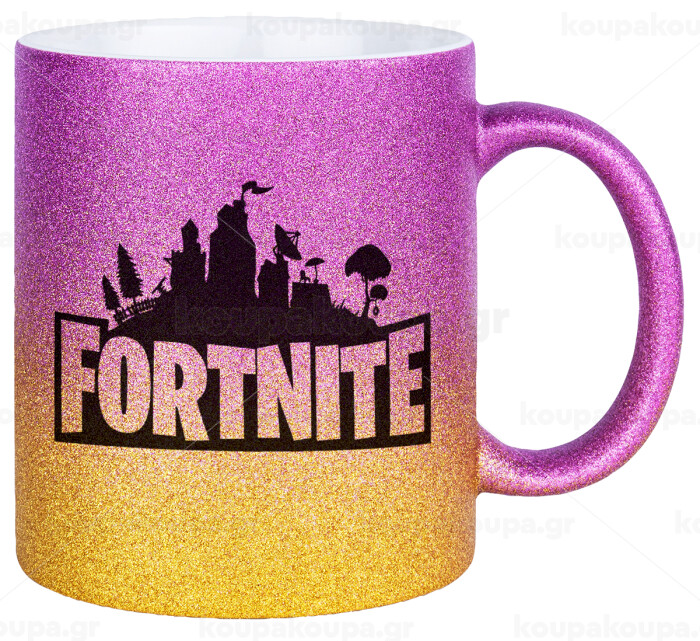 Fortnite, Κούπα Χρυσή/Ροζ Glitter, κεραμική, 330ml