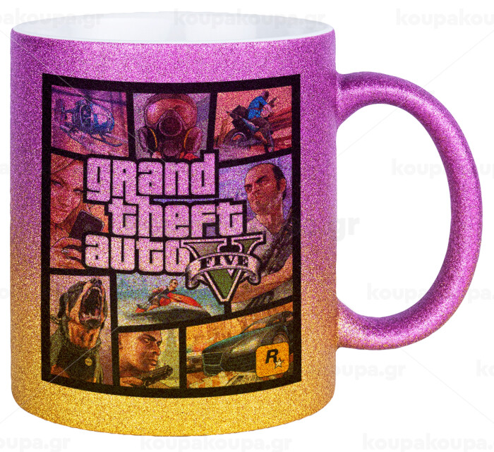 GTA V, Κούπα Χρυσή/Ροζ Glitter, κεραμική, 330ml