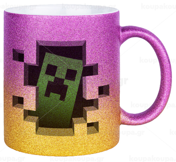 Minecraft creeper, Κούπα Χρυσή/Ροζ Glitter, κεραμική, 330ml