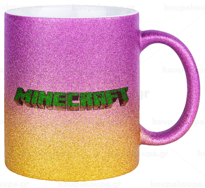 Minecraft logo green, Κούπα Χρυσή/Ροζ Glitter, κεραμική, 330ml