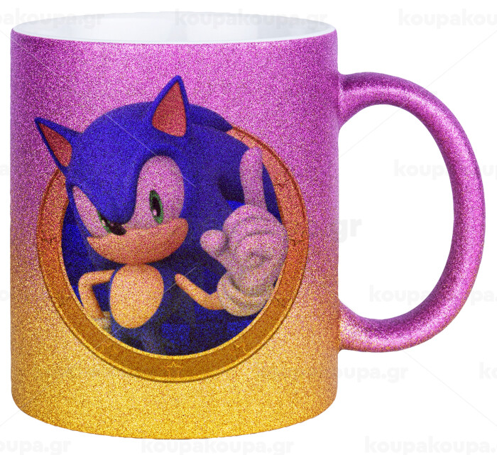 Sonic the hedgehog, Κούπα Χρυσή/Ροζ Glitter, κεραμική, 330ml