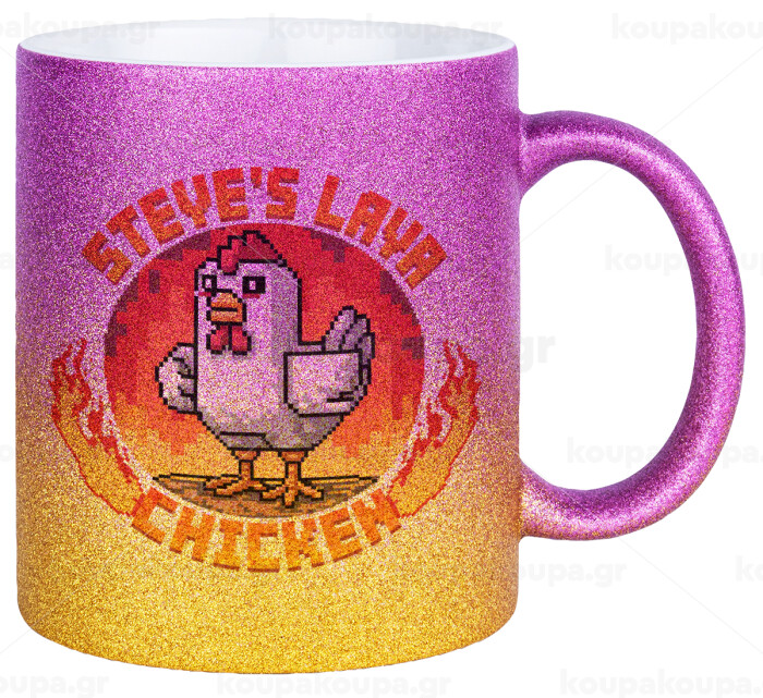Steve's Lava Chicken, Κούπα Χρυσή/Ροζ Glitter, κεραμική, 330ml