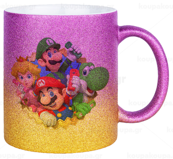Super mario and Friends, Κούπα Χρυσή/Ροζ Glitter, κεραμική, 330ml