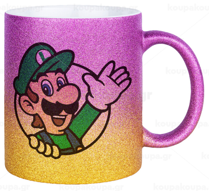 Super mario Luigi win, Κούπα Χρυσή/Ροζ Glitter, κεραμική, 330ml