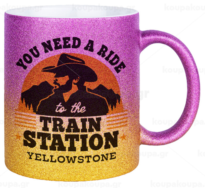You need a ride to the train station, Κούπα Χρυσή/Ροζ Glitter, κεραμική, 330ml