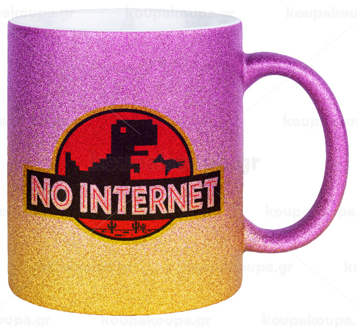 No internet, Κούπα Χρυσή/Ροζ Glitter, κεραμική, 330ml