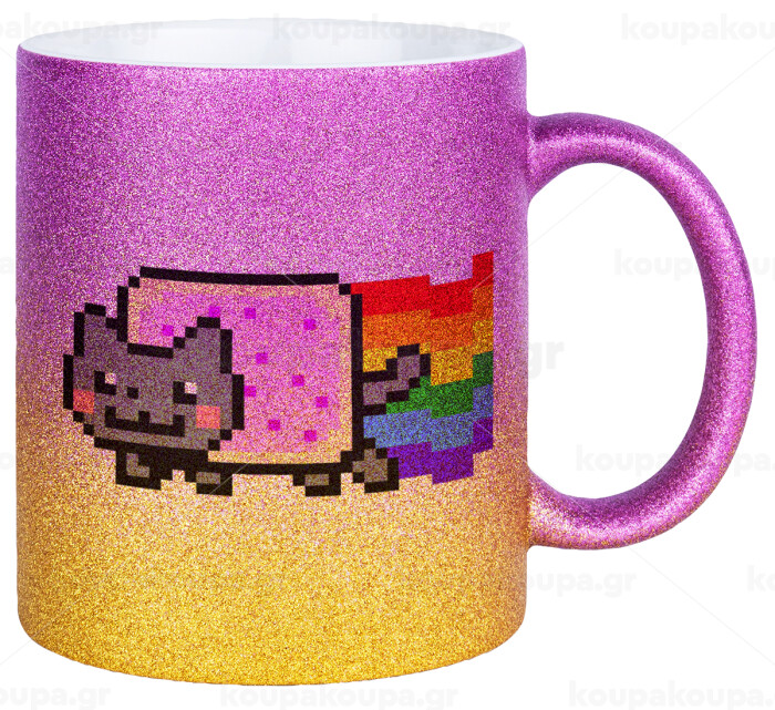 Nyan Pop-Tart Cat, Κούπα Χρυσή/Ροζ Glitter, κεραμική, 330ml