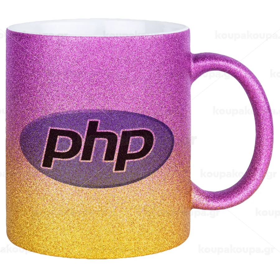 PHP, Κούπα Χρυσή/Ροζ Glitter, κεραμική, 330ml