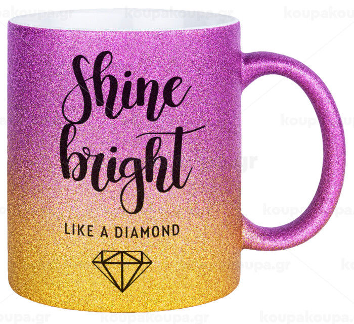 Bright, Shine like a Diamond, Κούπα Χρυσή/Ροζ Glitter, κεραμική, 330ml