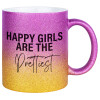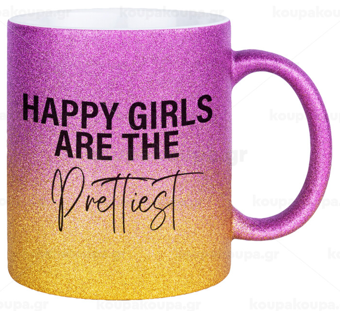 Happy girls are the prettiest, Κούπα Χρυσή/Ροζ Glitter, κεραμική, 330ml