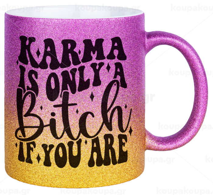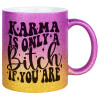 Karma is Only A Bitch if You Are, Κούπα Χρυσή/Ροζ Glitter, κεραμική, 330ml