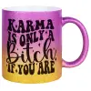 Karma is Only A Bitch if You Are, Κούπα Χρυσή/Ροζ Glitter, κεραμική, 330ml