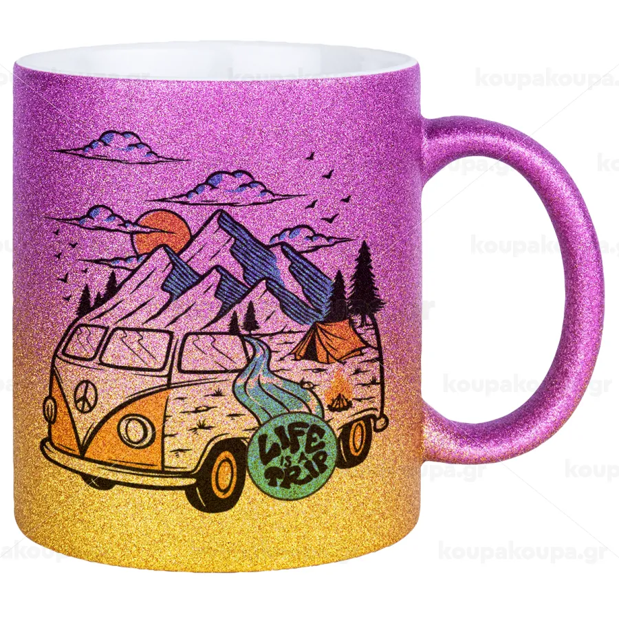 Life is a trip, Κούπα Χρυσή/Ροζ Glitter, κεραμική, 330ml