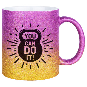 You can do it, Κούπα Χρυσή/Ροζ Glitter, κεραμική, 330ml