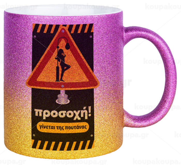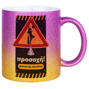 Προσοχή Γίνεται της πουτ.νας, Κούπα Χρυσή/Ροζ Glitter, κεραμική, 330ml