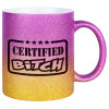 Certified Bitch, Κούπα Χρυσή/Ροζ Glitter, κεραμική, 330ml