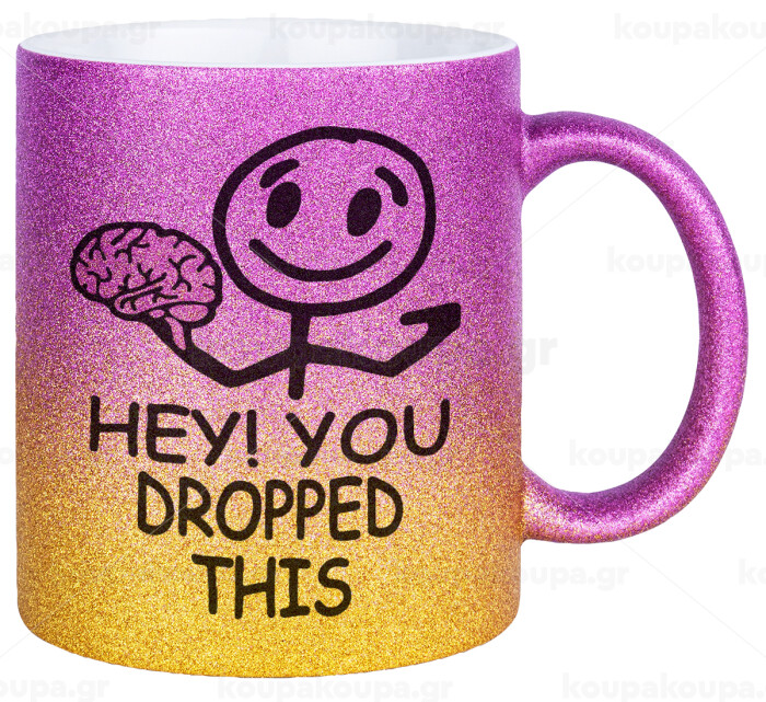 Hey! You dropped this, Κούπα Χρυσή/Ροζ Glitter, κεραμική, 330ml