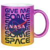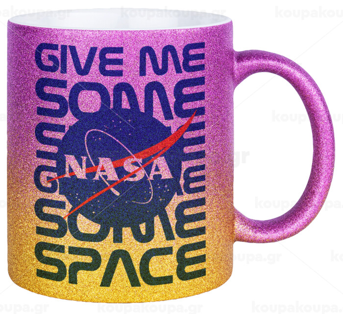 NASA give me some space, Κούπα Χρυσή/Ροζ Glitter, κεραμική, 330ml