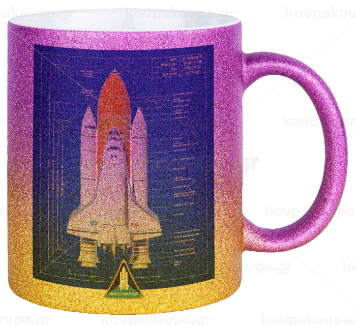 Nasa Space Shuttle, Κούπα Χρυσή/Ροζ Glitter, κεραμική, 330ml