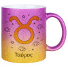 Ζώδια Ταύρος, Κούπα Χρυσή/Ροζ Glitter, κεραμική, 330ml