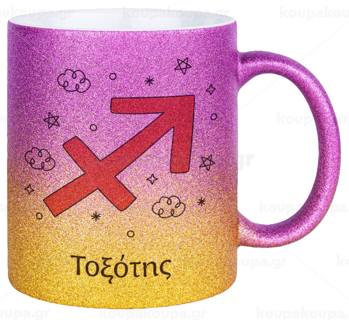 Ζώδια Τοξότης, Κούπα Χρυσή/Ροζ Glitter, κεραμική, 330ml