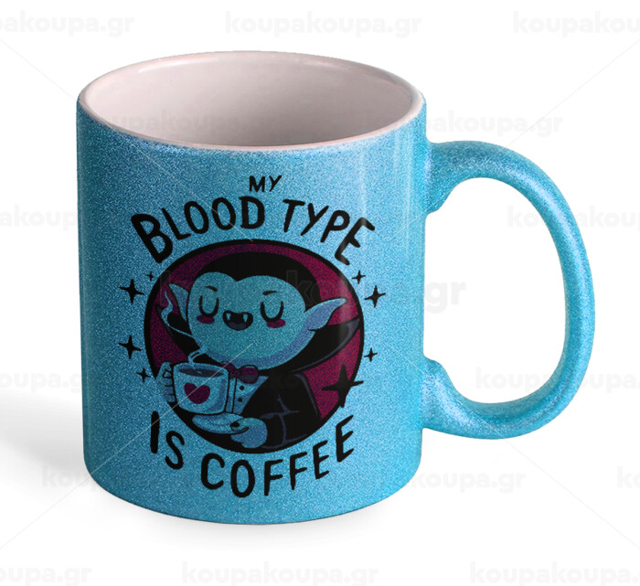 My blood type is coffee, Κούπα Σιέλ Glitter που γυαλίζει, κεραμική, 330ml
