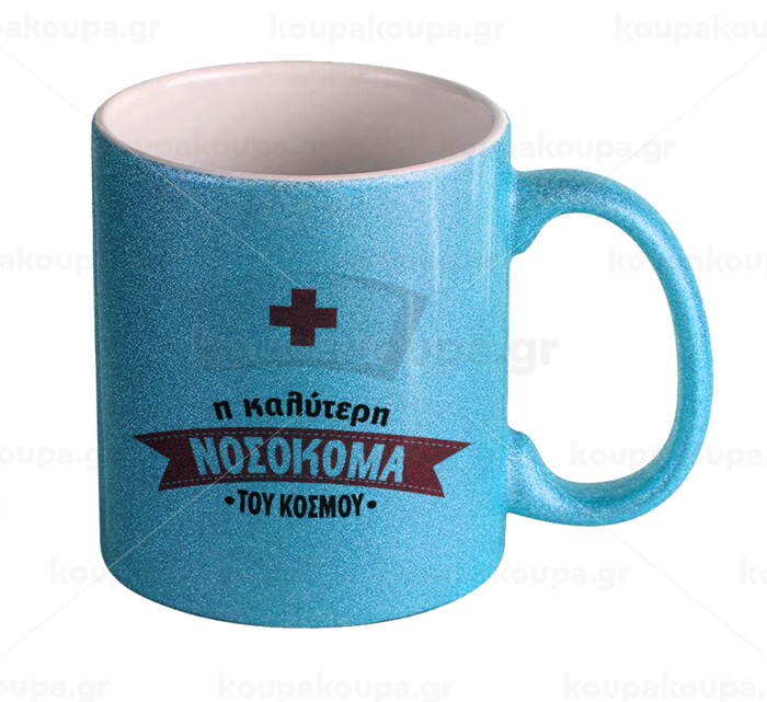 Η καλύτερη νοσοκόμα του κόσμου!!!, Κούπα Σιέλ Glitter που γυαλίζει, κεραμική, 330ml