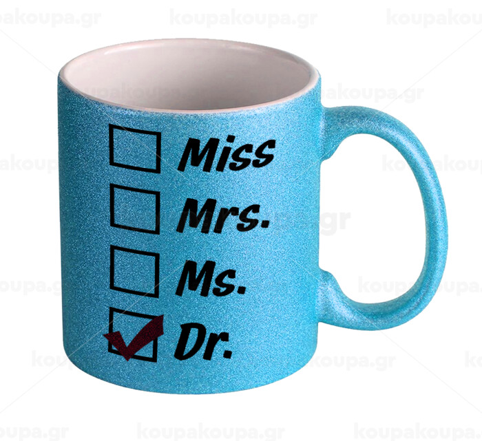 Miss, Mrs, Ms, DR, Κούπα Σιέλ Glitter που γυαλίζει, κεραμική, 330ml