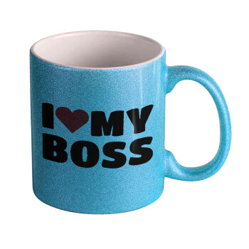 I LOVE MY BOSS, Κούπα Σιέλ Glitter που γυαλίζει, κεραμική, 330ml