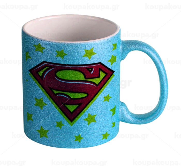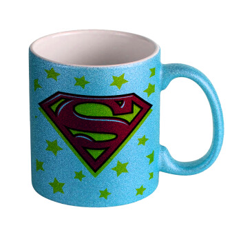 Superman Blue, Κούπα Σιέλ Glitter που γυαλίζει, κεραμική, 330ml
