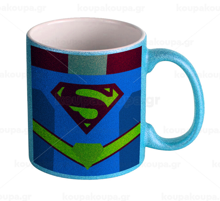 Superman flat, Κούπα Σιέλ Glitter που γυαλίζει, κεραμική, 330ml