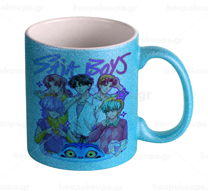 Huntrix Saja Boys, Κούπα Σιέλ Glitter που γυαλίζει, κεραμική, 330ml