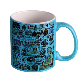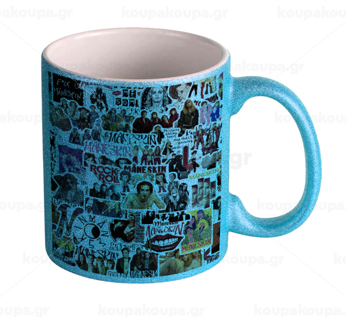 Maneskin stickers, Κούπα Σιέλ Glitter που γυαλίζει, κεραμική, 330ml