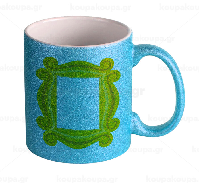 Friends frame, Κούπα Σιέλ Glitter που γυαλίζει, κεραμική, 330ml