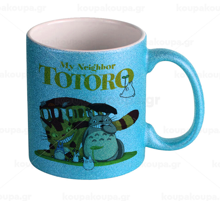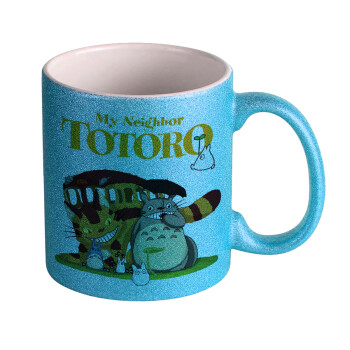 Totoro and Cat, Κούπα Σιέλ Glitter που γυαλίζει, κεραμική, 330ml