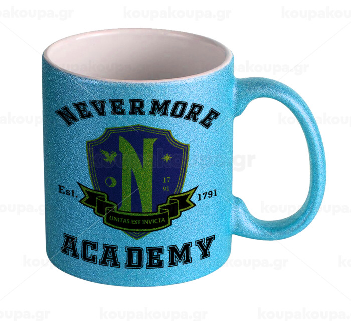Wednesday Nevermore Academy University, Κούπα Σιέλ Glitter που γυαλίζει, κεραμική, 330ml