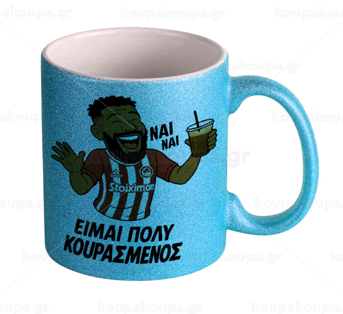 Ροντινέι, "ΠΟΛΥ ΚΟΥΡΑΣΜΕΝΟΣ", Κούπα Σιέλ Glitter που γυαλίζει, κεραμική, 330ml