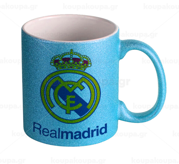 Real Madrid CF, Κούπα Σιέλ Glitter που γυαλίζει, κεραμική, 330ml