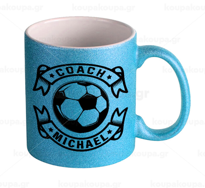 Soccer coach, Κούπα Σιέλ Glitter που γυαλίζει, κεραμική, 330ml
