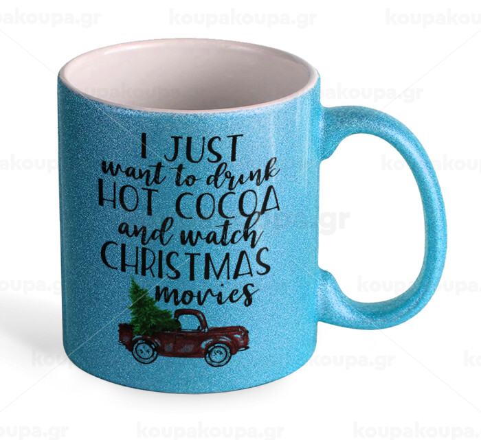 I just want to drink hot cocoa and watch christmas movies pickup car, Κούπα Σιέλ Glitter που γυαλίζει, κεραμική, 330ml