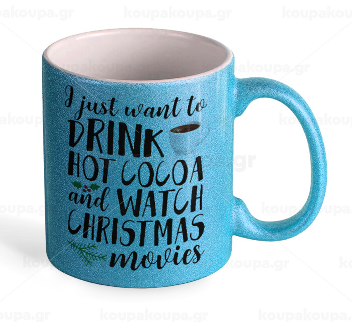 I just want to drink hot cocoa and watch christmas movies, Κούπα Σιέλ Glitter που γυαλίζει, κεραμική, 330ml