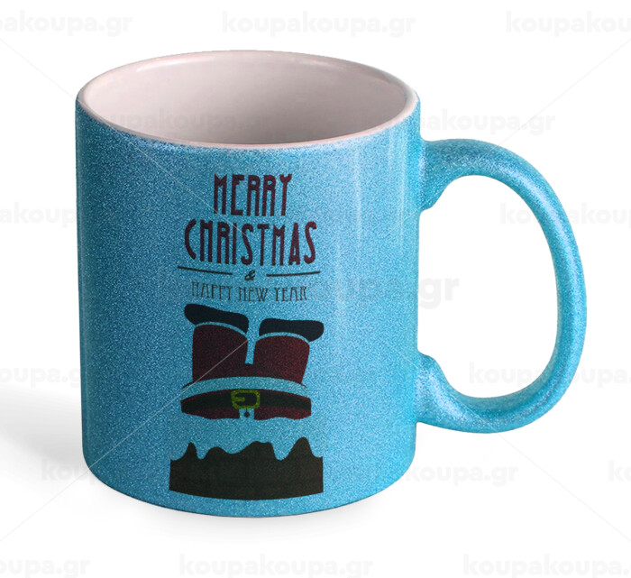 Merry christmas chimney, Κούπα Σιέλ Glitter που γυαλίζει, κεραμική, 330ml