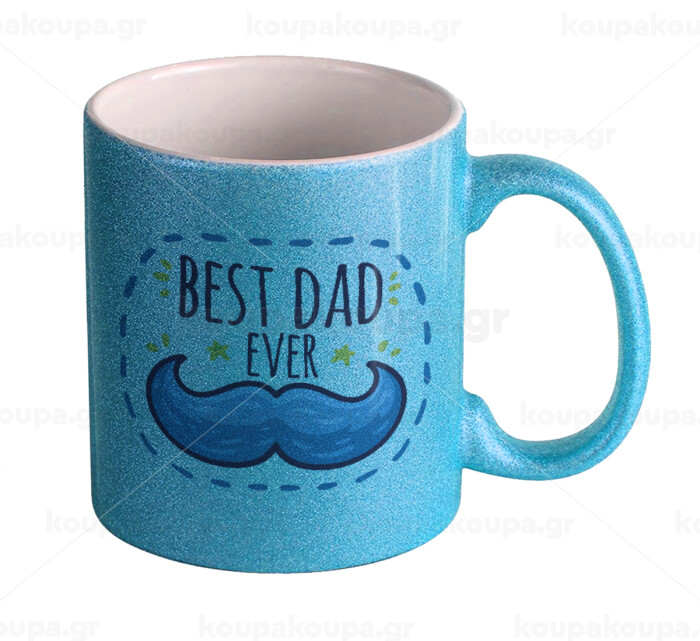 Best dad ever μπλε μουστάκι, Κούπα Σιέλ Glitter που γυαλίζει, κεραμική, 330ml