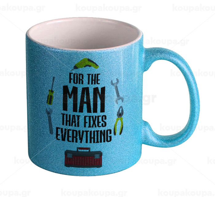 For the man that fixes everything!, Κούπα Σιέλ Glitter που γυαλίζει, κεραμική, 330ml