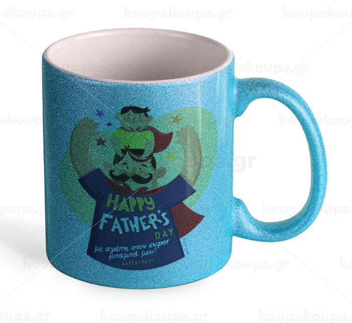 Happy Fathers Day με όνομα, Κούπα Σιέλ Glitter που γυαλίζει, κεραμική, 330ml