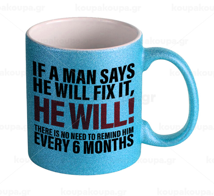 If a man says he will fix it He will There is no need to remind him every 6 months, Κούπα Σιέλ Glitter που γυαλίζει, κεραμική, 330ml